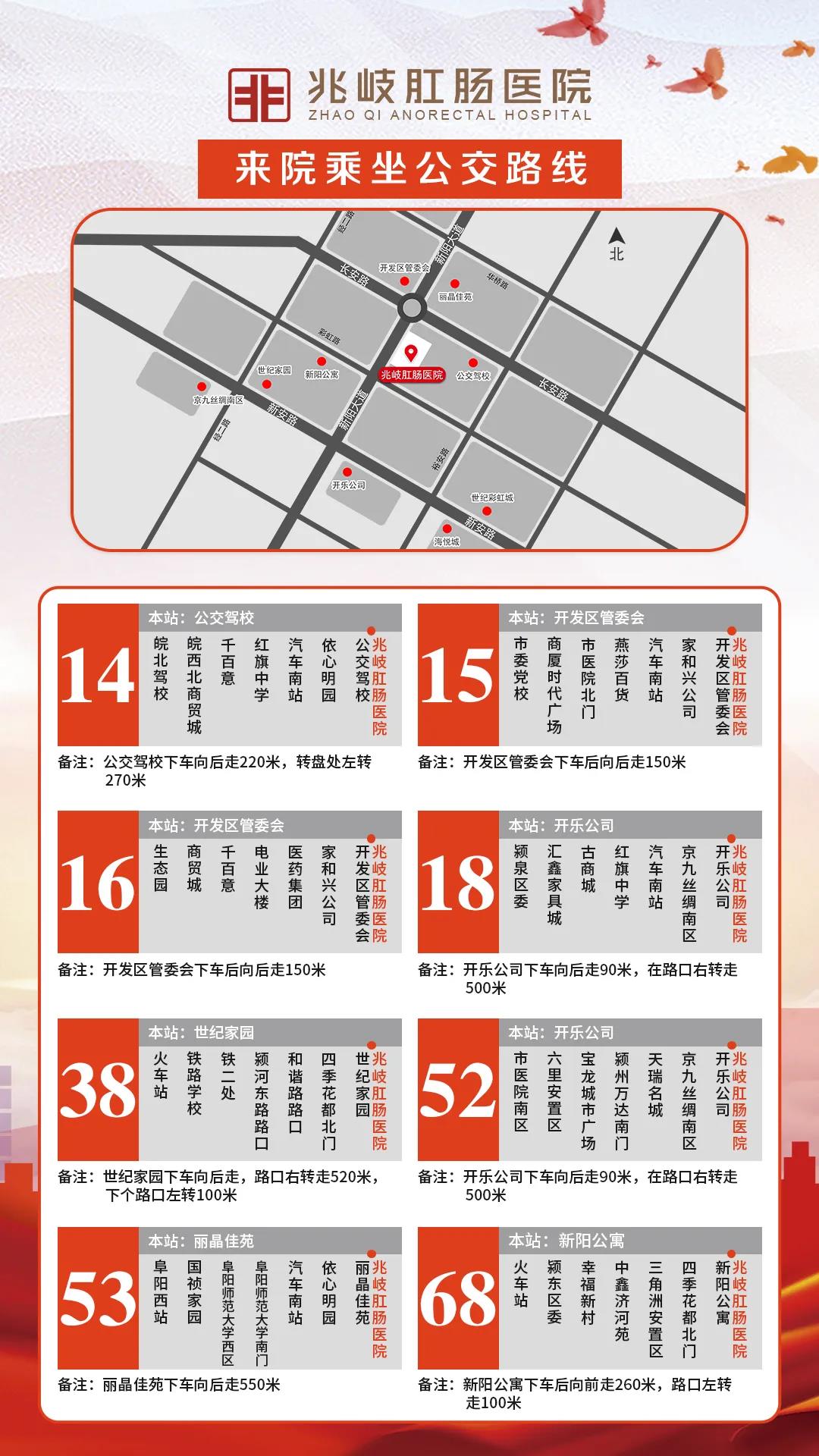 阜阳兆岐肛肠医院(原:阜阳中西医结合肛肠医院)是一家国家重点肛肠专科医院,着重研究治疗各种疑难肛肠疾病,如高位复杂性肛瘘、嵌顿痔、复杂性混合痔、复杂性肛裂、重度直肠脱垂、小儿肛肠病、结直肠肿瘤等等,多项临床重点科研项目荣获国家、省级、市级多个荣誉奖项。医院设有全国中医肛肠学科名医工作室,2017年在全国肛肠大会上发布数据,我院五大优势病种为:混合痔、肛裂、肛瘘、肛周脓肿和直肠脱垂。阜阳兆岐肛肠医院十余年如一日,用精湛技术守护您的肛肠健康。